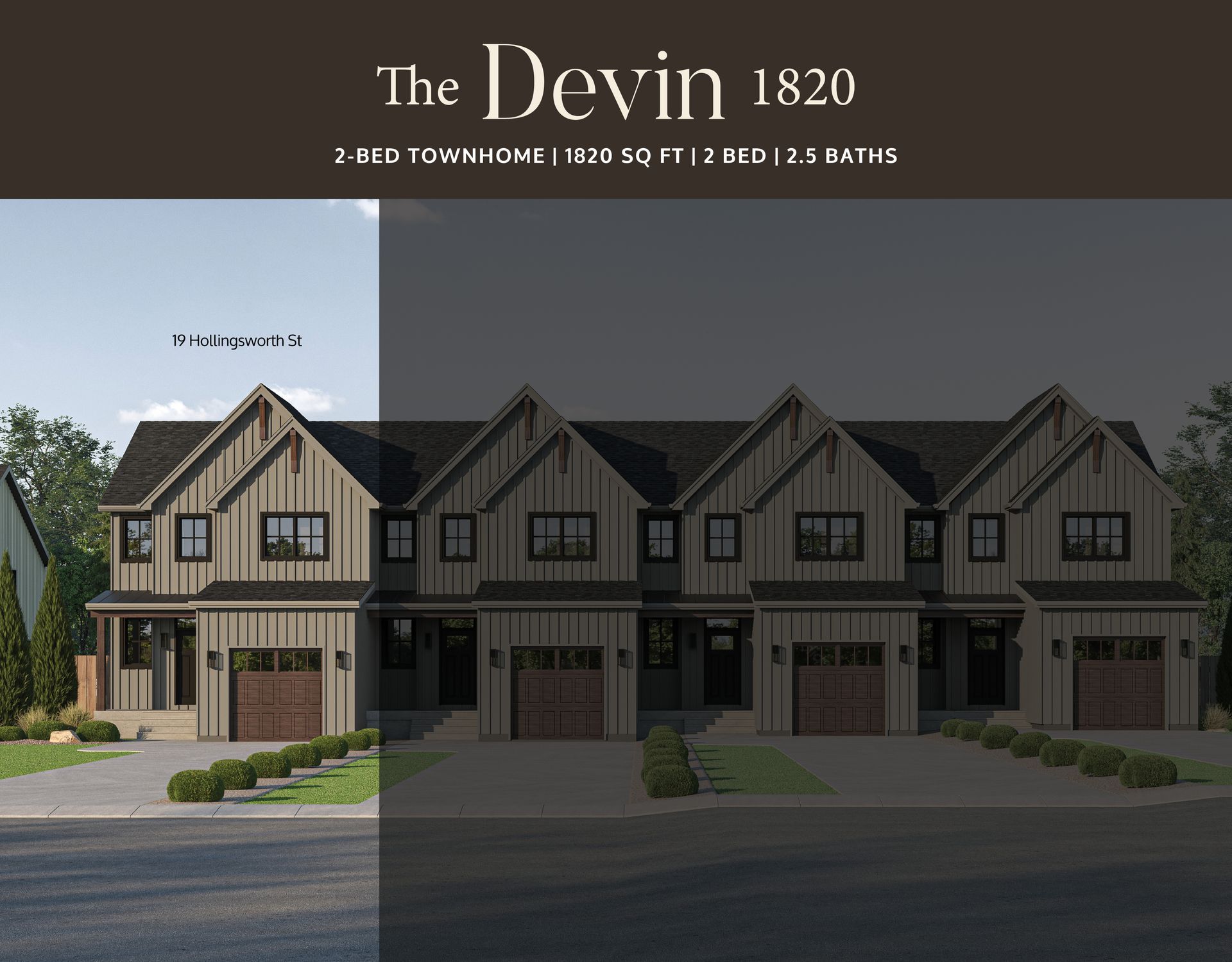Introducing the Devin model, a beautifully crafted modern farmhouse style townhouse located in the picturesque community of Eastfields. Designed with timeless curb appeal, this home showcases charming vertical board and batten siding, rich wood accents, and classic gabled roof lines that create a warm and inviting first impression.