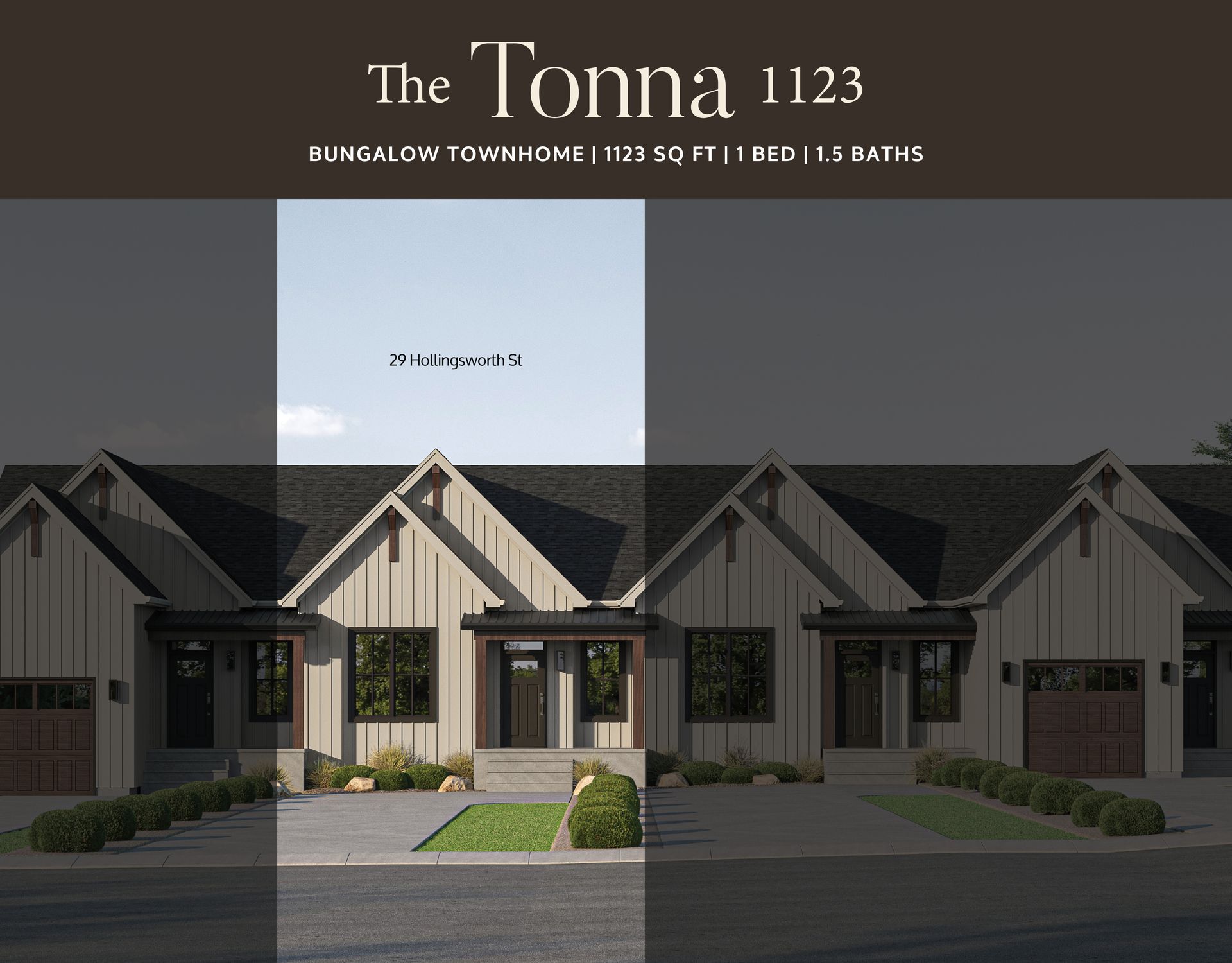Introducing the Tonna Model, a stunning modern farmhouse-style bungalow townhome in the picturesque new community of Eastfields.