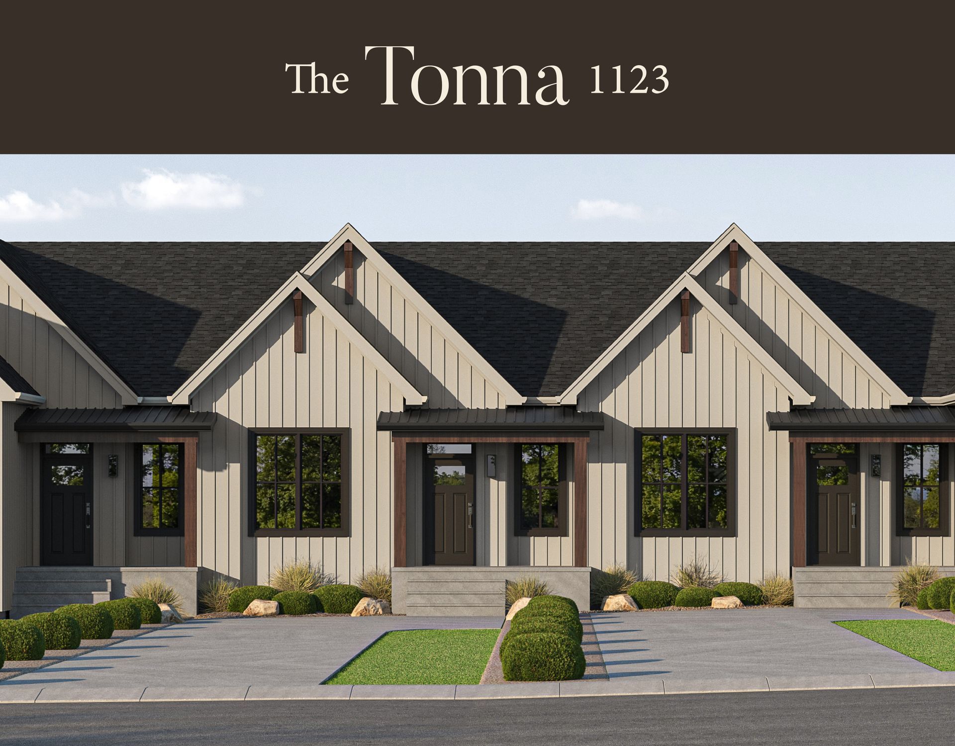 Introducing the TONNA Model, a stunning modern farmhouse-style bungalow townhome in the picturesque new community of Eastfields.