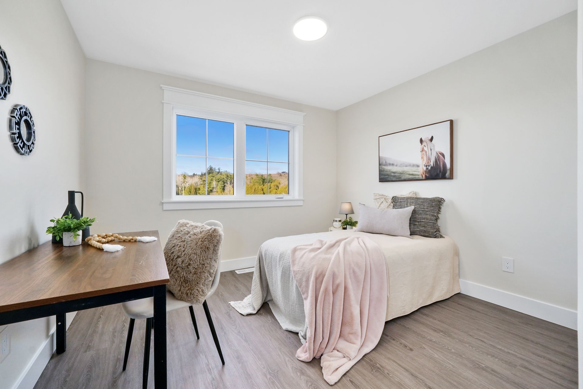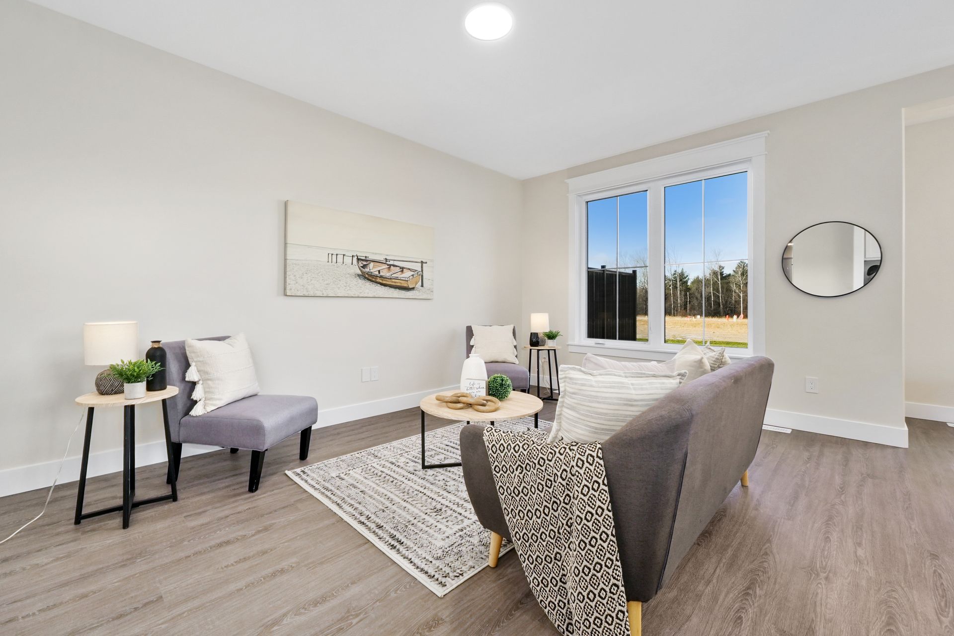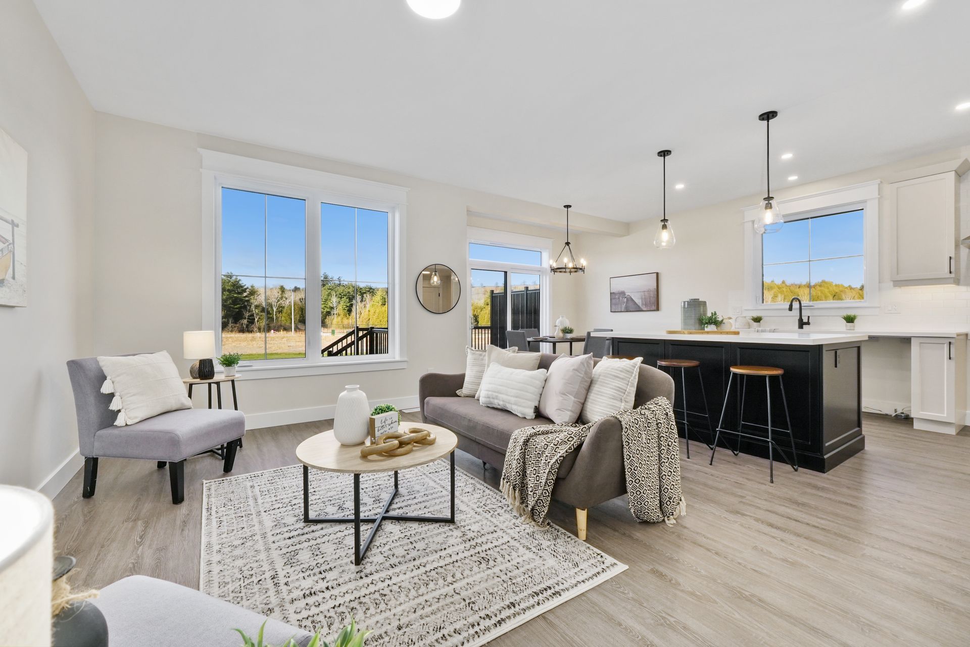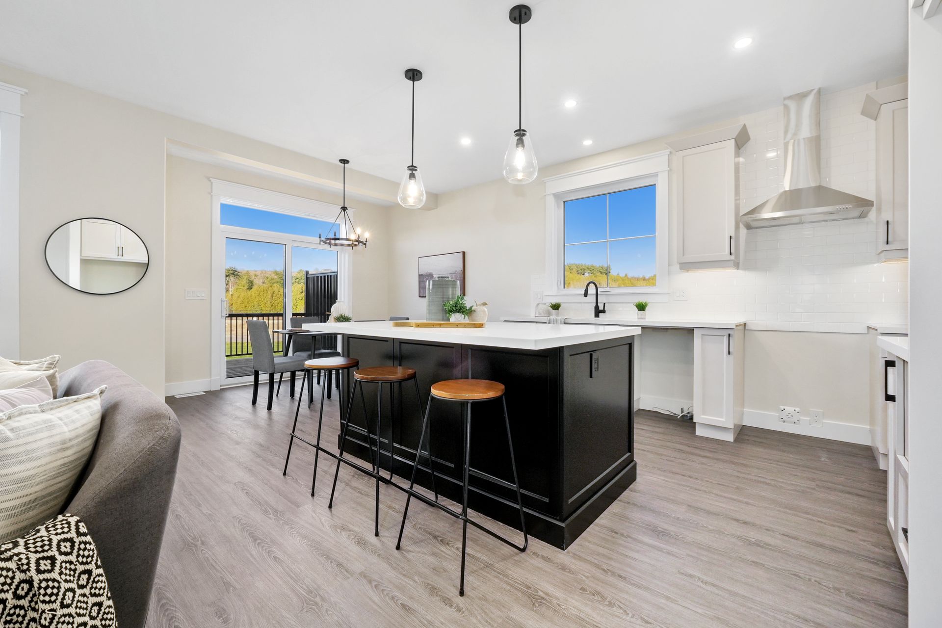 The mudroom provides easy access to the 1-car garage and leads into the open-concept kitchen, dining, and great room. The kitchen flows seamlessly into the dining area and great room, creating a perfect space for family gatherings and entertaining. A sliding door from the dining room leads out to a 12' x 10' deck, featuring a privacy screen to ensure homeowners enjoy their outdoor space without feeling overlooked by their neighbours.