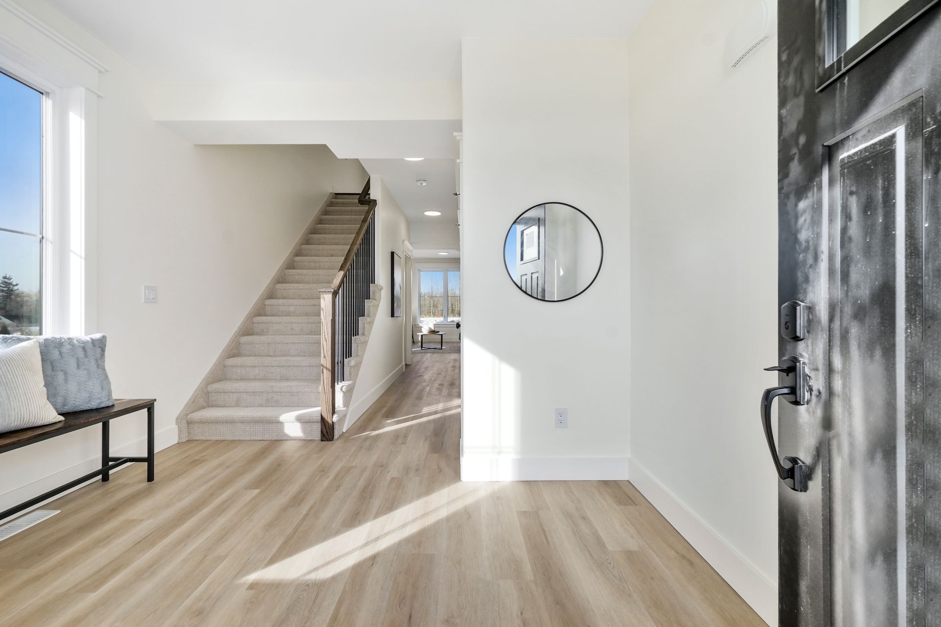 Introducing the Carsten model, a stunning modern farmhouse-style townhome located in the picturesque new community of Eastfields.