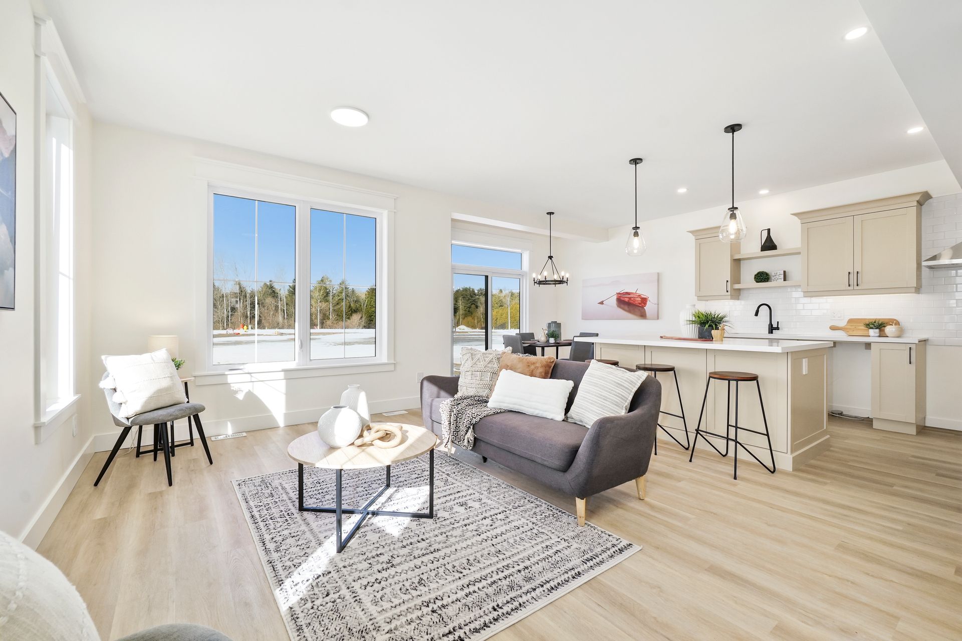 This exterior unit features 3 bedrooms and 2.5 bathrooms, offering a perfect blend of contemporary elegance and rustic charm. The main level boasts a spacious open concept living, kitchen, and dining area, ideal for entertaining and everyday living. Step outside to a private back deck, perfect for relaxing and enjoying the outdoors with privacy from your neighbours.