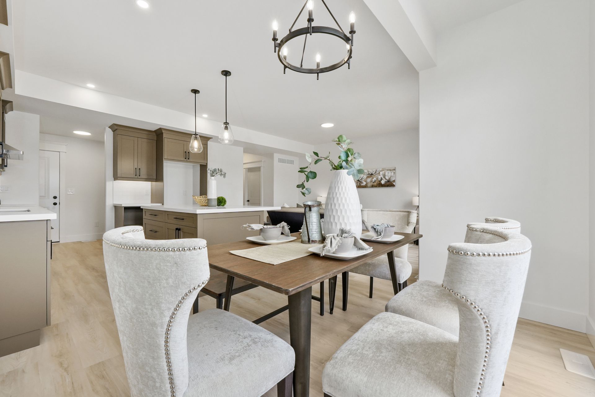 The mudroom provides easy access to the 1-car garage and leads into the open-concept kitchen, dining, and great room, perfect for family gatherings and entertaining. The deck off the dining room comes with a privacy screen, ensuring a secluded outdoor space.