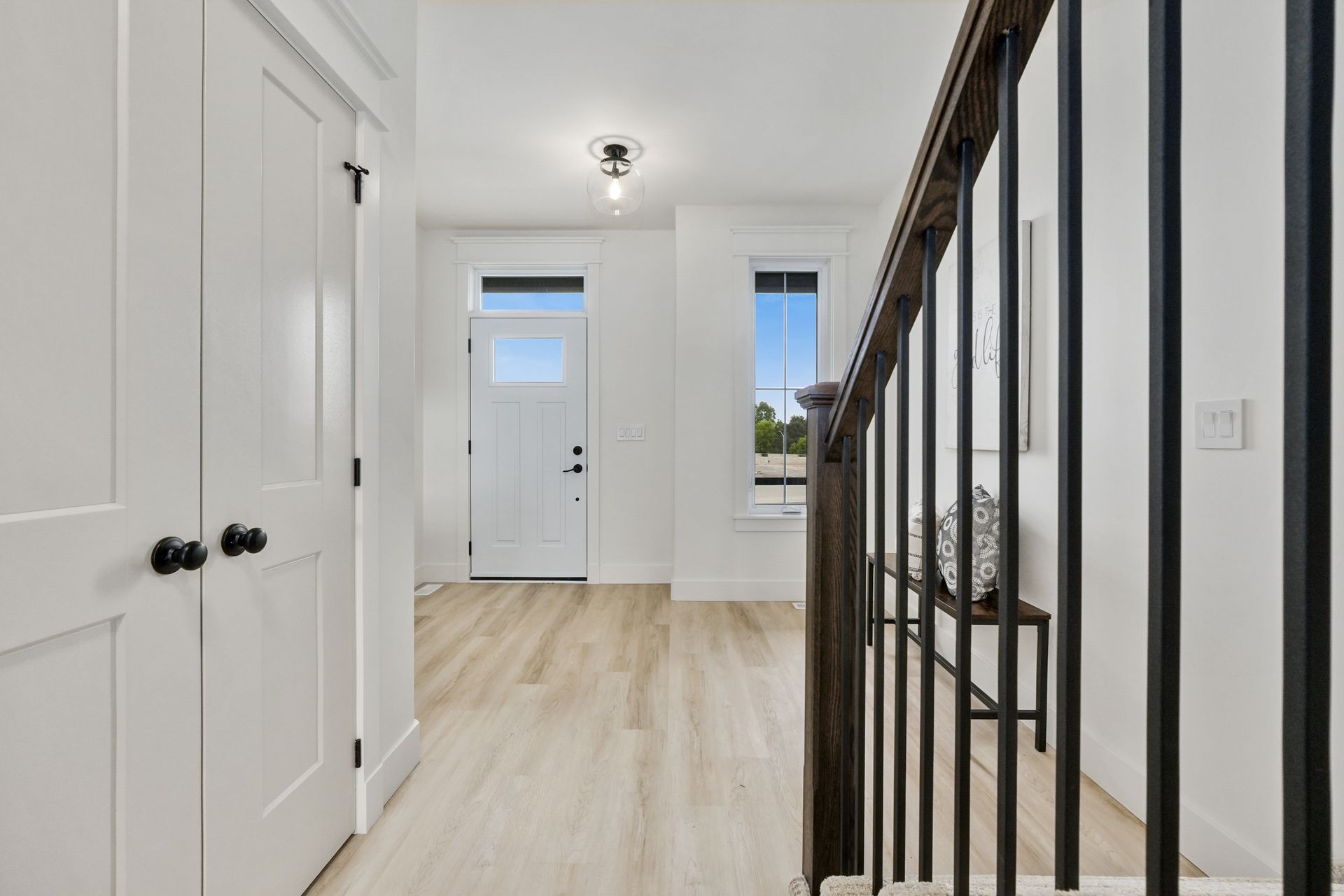 The Carsten offers a spacious front foyer with stairs leading to the upper level, a closet for storage, and a powder room.