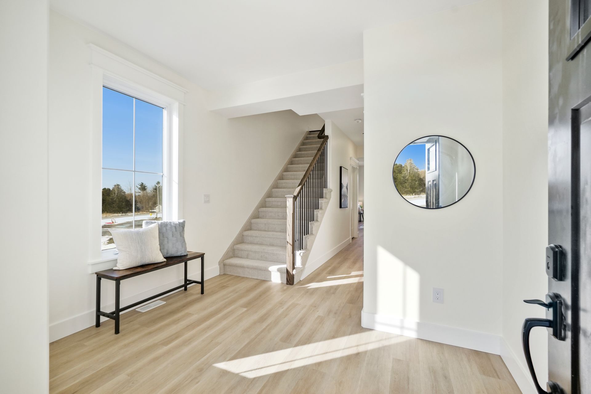 The Flynn stands out for its privacy screen on the deck, offering separation from neighbours and enhancing outdoor enjoyment. The versatile storage options, including the closets created from the rough-in elevator, provide added convenience without sacrificing style.