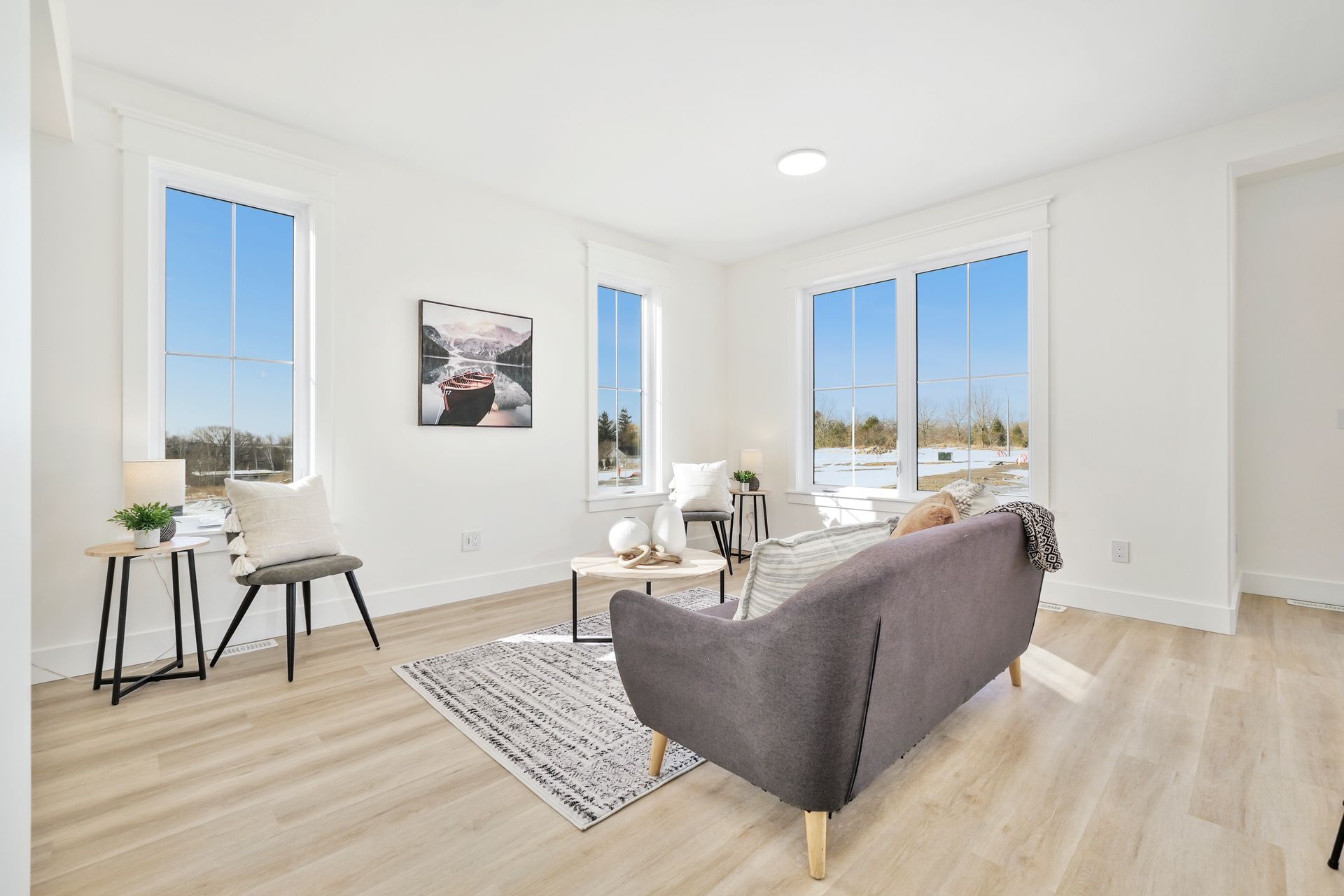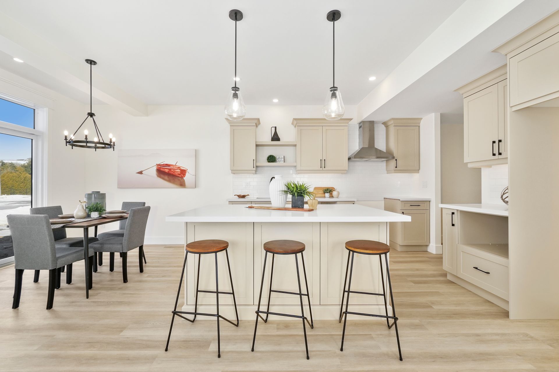 The mudroom provides easy access to the 1-car garage and leads into the open-concept kitchen, dining, and great room. The kitchen flows seamlessly into the dining area and great room, creating a perfect space for family gatherings and entertaining. A sliding door from the dining room leads out to a spacious deck, featuring a privacy screen to ensure homeowners enjoy their outdoor space without feeling overlooked by their neighbours.
