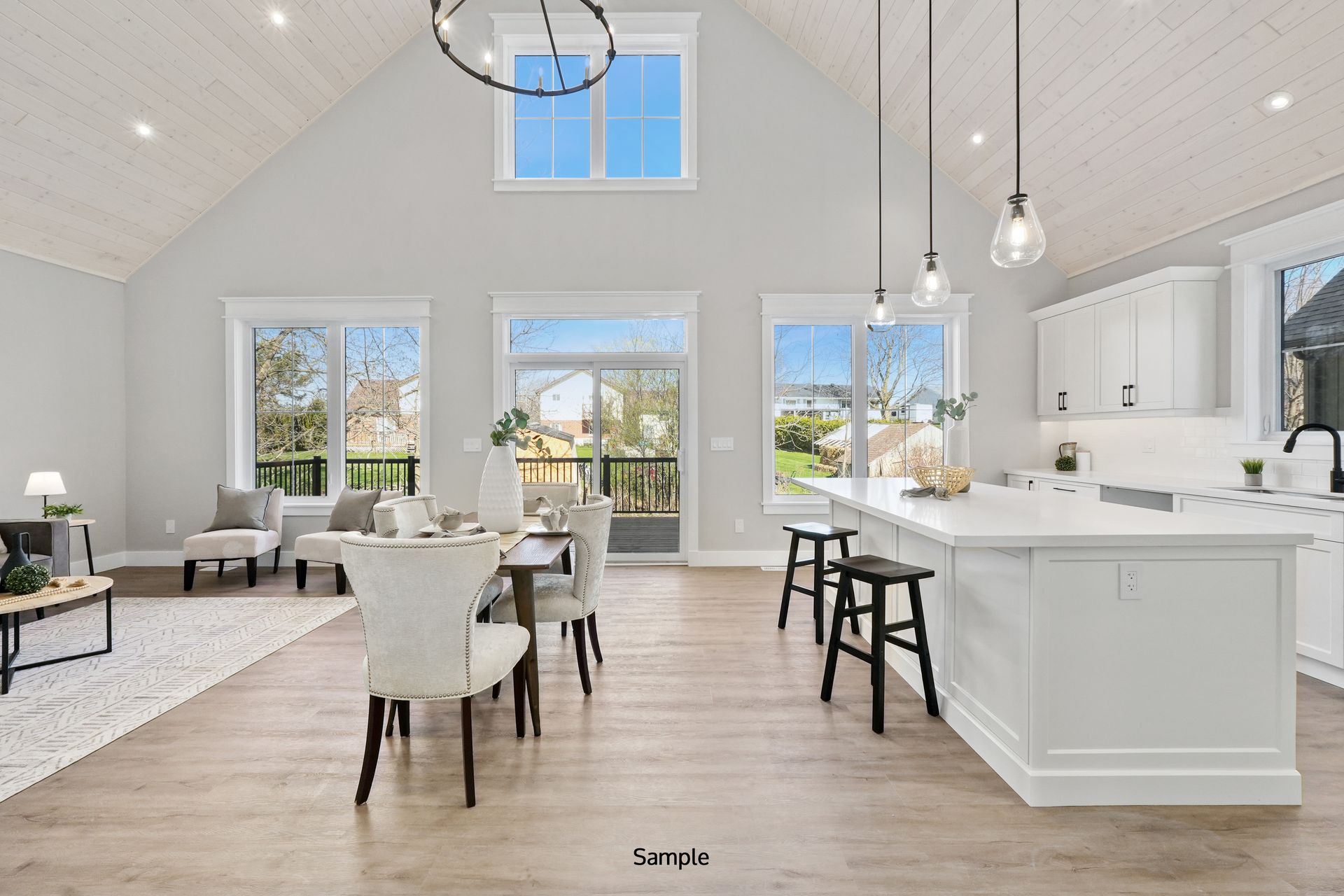 The Aksel’s unique features include the separation of the main-level primary bedroom from the other bedrooms for enhanced privacy and the impressive vaulted ceiling in the kitchen, dining, and great room, creating a sense of openness and elegance. Additionally, the 19' x 10' deck, accessible through the living room, is the largest deck out of all the plans, offering ample space for outdoor relaxation and entertainment.