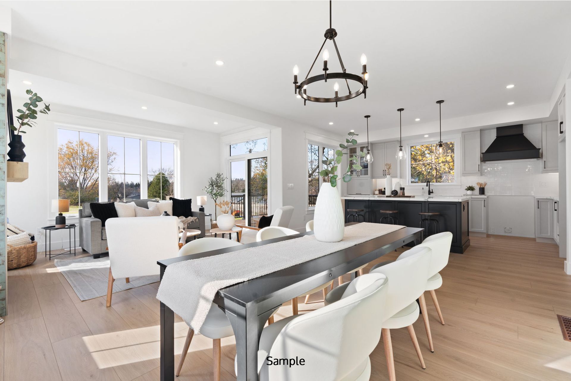Step into a private foyer with a convenient closet for all your storage needs. The main hallway leads to the heart of the home—a bright, open-concept kitchen, living, and dining area designed for effortless entertaining and family gatherings. A sliding door from the living room opens to a spacious deck, perfect for outdoor relaxation or al fresco dining.