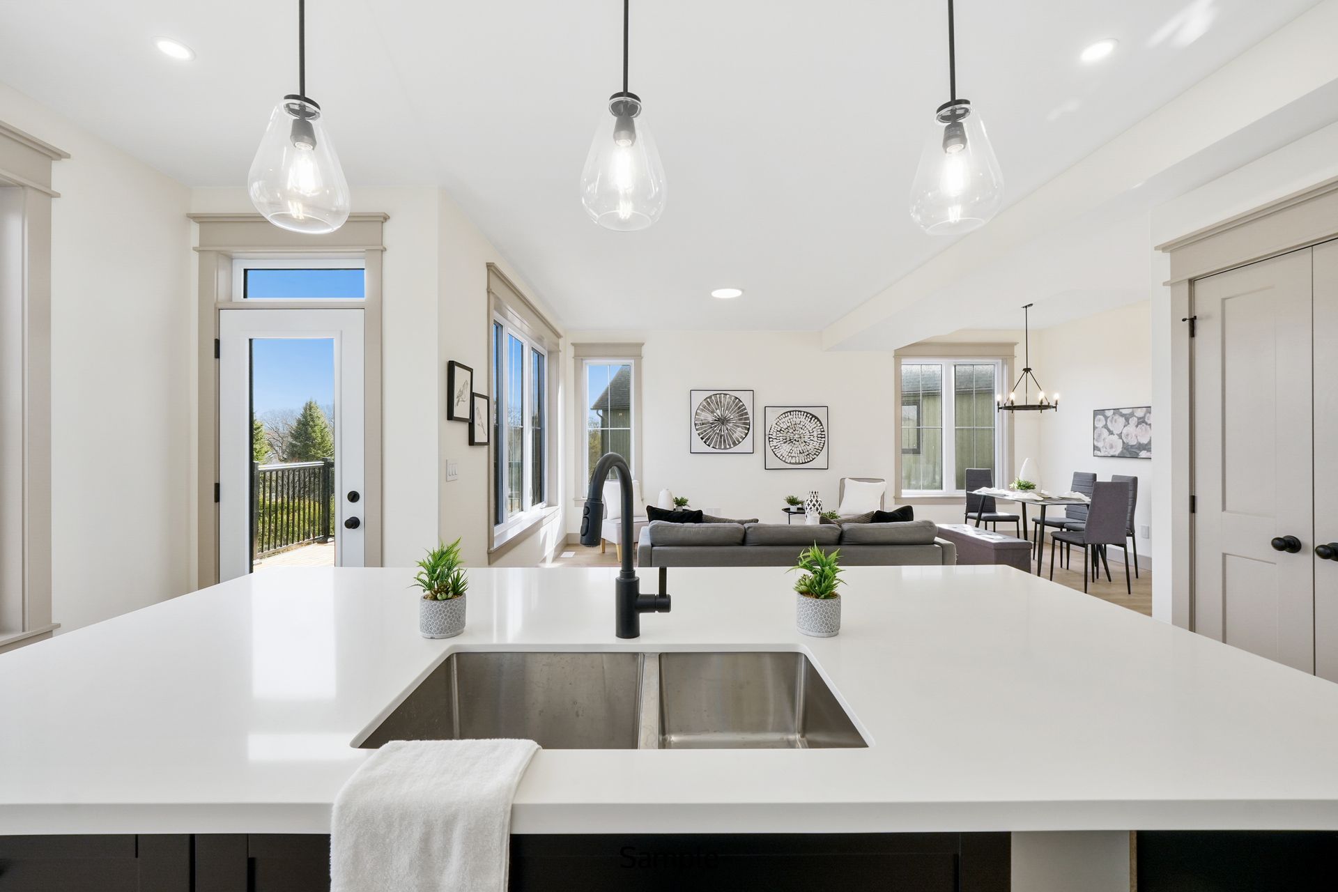 The heart of the home features a spacious open-concept kitchen, great room, and dining area designed for seamless entertaining and family time. From the kitchen, step outside through the sliding doors to a generous back deck, perfect for relaxing or hosting outdoor gatherings.